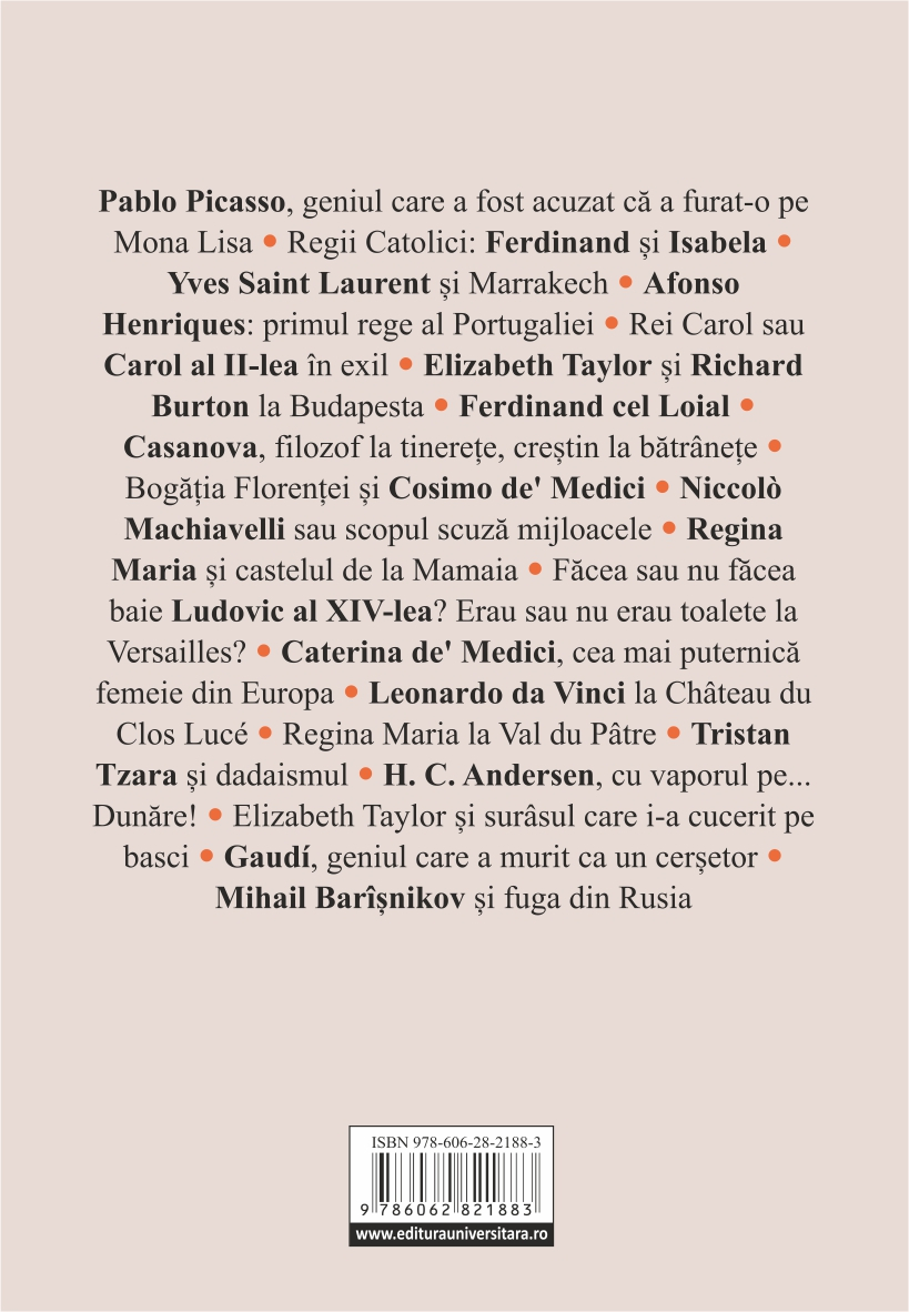 Am fost fascinat dintotdeauna de expediții și de călătorii și poate de aceea mi‑am dorit să pot și eu să merg peste mări și țări ‑ de unul singur, cu prietenii sau cu grupuri organizate – pentru a vedea cu ochii mei locurile prin care au trăit sau au trecut figuri istorice de ieri sau celebrități de azi, să vizitez catedrale și fortărețe, să admir castele, palate și catedrale medievale sau să mă bucur de peisajele pe care natura ni le‑a dăruit din plin. Am mâncat ceea ce era specific fiecărui loc în care am avut privilegiul să ajung și am ținut neapărat să intru în acele mari piețe alimentare în care vezi cu adevărat viața așa cum este, dincolo de strălucirea, uneori falsă, a traseelor turistice. M‑am întâlnit cu oameni de toate felurile și, mai mult decât orice, am vrut să aflu lucruri inedite din cultura și istoria fiecăruia. Am uitat de toate neplăcerile legate de zboruri întârziate, de hoteluri proaste, de oameni mai puțin politicoși sau de propriile mele limite și am păstrat în minte doar ceea ce a fost frumos.
